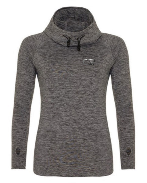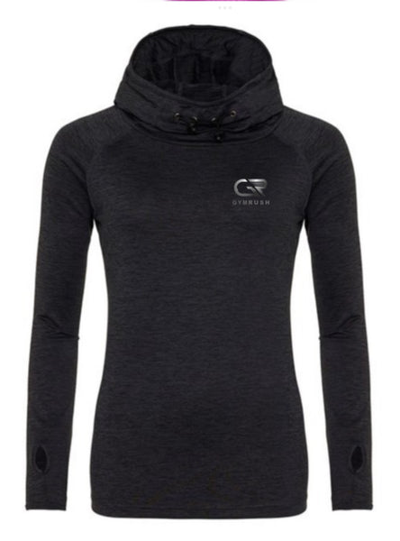 A lightweight hoodie with thumb holes and a reflective strip on hood adding functionality and safety.