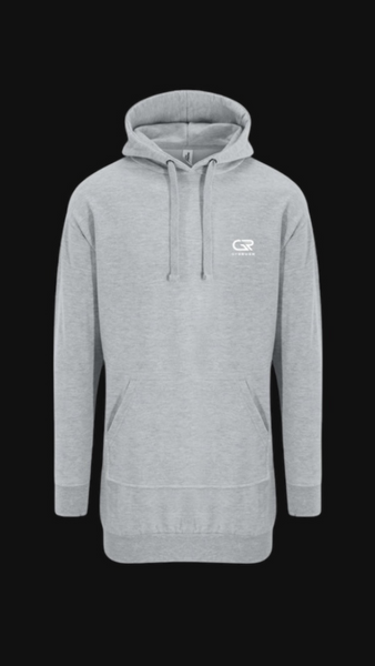 Longer version of hoodie that will sit below your hips, ideal for lounging or wearing to and from the gym