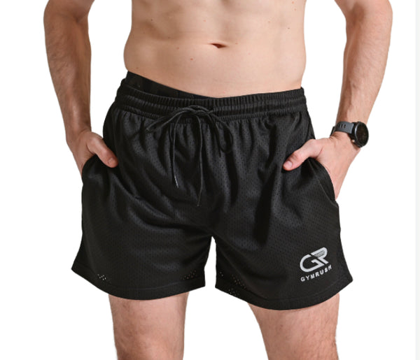 Mens 2 in 1 shorts with inner layer, side open pockets. Elasticated waist with a drawcord.