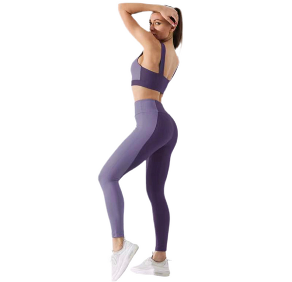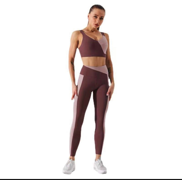 Duo colour leggings and sports bra with removable pads. With contrasting colours blended together, they provide a chic and stylish option for activewear.